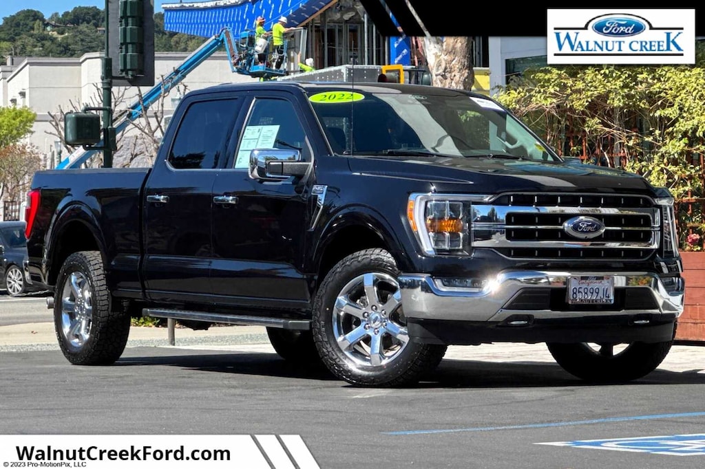 ***Warm Up Your Winter with These Hot Deals at Walnut Creek Ford***. . . Walnut Creek Ford has proudly served the Bay Area for over 30 years. A family-owned and operated business, our goal has always been to help customers find a vehicle that fits their needs, and to keep it running in top condition with our award-winning service and parts department. This vehicle MAY include the following features. Please verify the features to ensure accuracy before purchasing the vehicle. Bed Utility Package (BoxLink, LED Box Lighting, Power Tailgate, and Tailgate Step w/Tailgate Work Surface), Equipment Group 501A Mid (Onboard 400W Outlet, Radio: B&O Sound System by Bang & Olufsen, and Universal Garage Door Opener), Lariat Chrome Appearance Package (6 Bright Polished Running Board, Chrome 2-Bar Grille w/4 Minor Bars, Chrome Door & Tailgate Handles w/Body-Color Bezel, Chrome Single-Tip Exhaust, Chrome Skull Caps on Exterior Mirrors, and Wheels: 18 Chrome-Like PVD), Trailer Tow Package (Class IV Trailer Hitch Receiver, Integrated Trailer Brake Controller, and Pro Trailer Backup Assist), 18 Machined-Aluminum Wheels, 3.31 Axle Ratio, 360 Degree Camera, 4-Wheel Disc Brakes, 7 Speakers, ABS brakes, Adjustable pedals, Air Conditioning, Alloy wheels, AM/FM radio: SiriusXM with 360L, Auto High-beam Headlights, Auto Start-Stop Removal, Auto-dimming door mirrors, Auto-dimming Rear-View mirror, Automatic temperature control, Brake assist, Bumpers: chrome, Compass, Connected Navigation & SiriusXM w/360L Removal, Delay-off headlights, Driver door bin, Driver vanity mirror, Dual front impact airbags, Dual front side impact airbags, Electronic Locking w/3.31 Axle Ratio, Electronic Stability Control, Emergency communication system: SYNC 4 911 Assist, Extended Range 36 Gallon Fuel Tank, Exterior Parking Camera Rear, Front anti-roll bar, Front Center Armrest w/Storage, Front dual zone A/C, Front fog lights, Front reading lights, Front wheel independent suspension, Fully automatic headlights, Heated door mirrors, Heated front seats, Illuminated entry, Leather-Trimmed 40/20/40 Front Seat, LED Sideview Mirror Spotlights, Low tire pressure warning, Memory seat, Occupant sensing airbag, Outside temperature display, Overhead airbag, Overhead console, Panic alarm, Partitioned Lockable Fold-Flat Storage, Passenger door bin, Passenger vanity mirror, Pedal memory, Power door mirrors, Power driver seat, Power passenger seat, Power steering, Power windows, Radio data system, Radio: AM/FM SiriusXM w/360L, Rear reading lights, Rear seat center armrest, Rear step bumper, Rear window defroster, Remote keyless entry, Security system, Speed control, Speed-sensing steering, Split folding rear seat, Steering wheel mounted audio controls, SYNC 4 w/Enhanced Voice Recognition, Tachometer, Telescoping steering wheel, Tilt steering wheel, Traction control, Trip computer, Turn signal indicator mirrors, Twin Panel Moonroof, Variably intermittent wipers, Ventilated front seats, Voltmeter, and Wheels: 20 Chrome-Like PVD.. . . Certified. Ford Blue Certified Details:. . * Warranty Deductible: $100. * Transferable Warranty. * Limited Warranty: 3 Month/4,000 Mile (whichever comes first) after new car warranty expires or from certified purchase date. * Roadside Assistance. * Vehicle History. * 139 Point Inspection. * and 11,000 FordPass Rewards Points to use toward first maintenance visit Please note that Walnut Creek Ford is currently only able to offer vehicles for sale to Northern California residents.